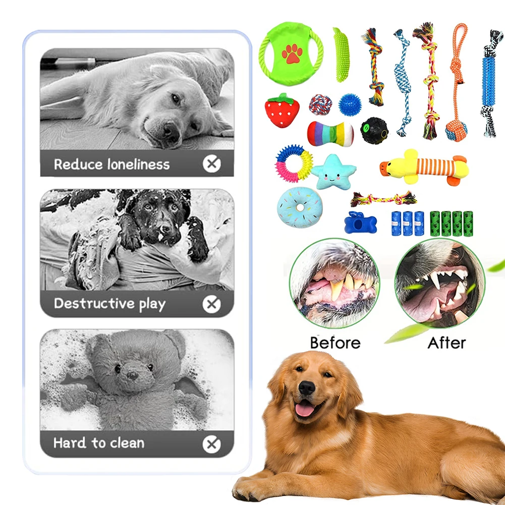 25PCS Various Puppy Dog Toys for Teething Entertainment & Interaction Puppy Chew Toys Pack with Rope Toy for Puppies & Small Dog