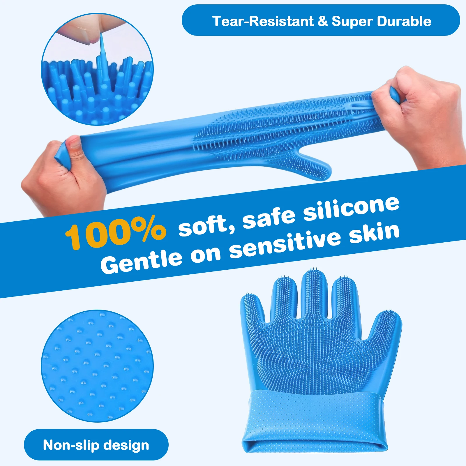 2. Dog Washing Gloves: Crafted from tear-resistant silicone with high-density bristles, these Dog Washing Gloves double as brushes, washers, and massagers. With 3,000 silicone grooves, they create rich lather for deep cleaning, saving shampoo and making bath time quicker and easier.