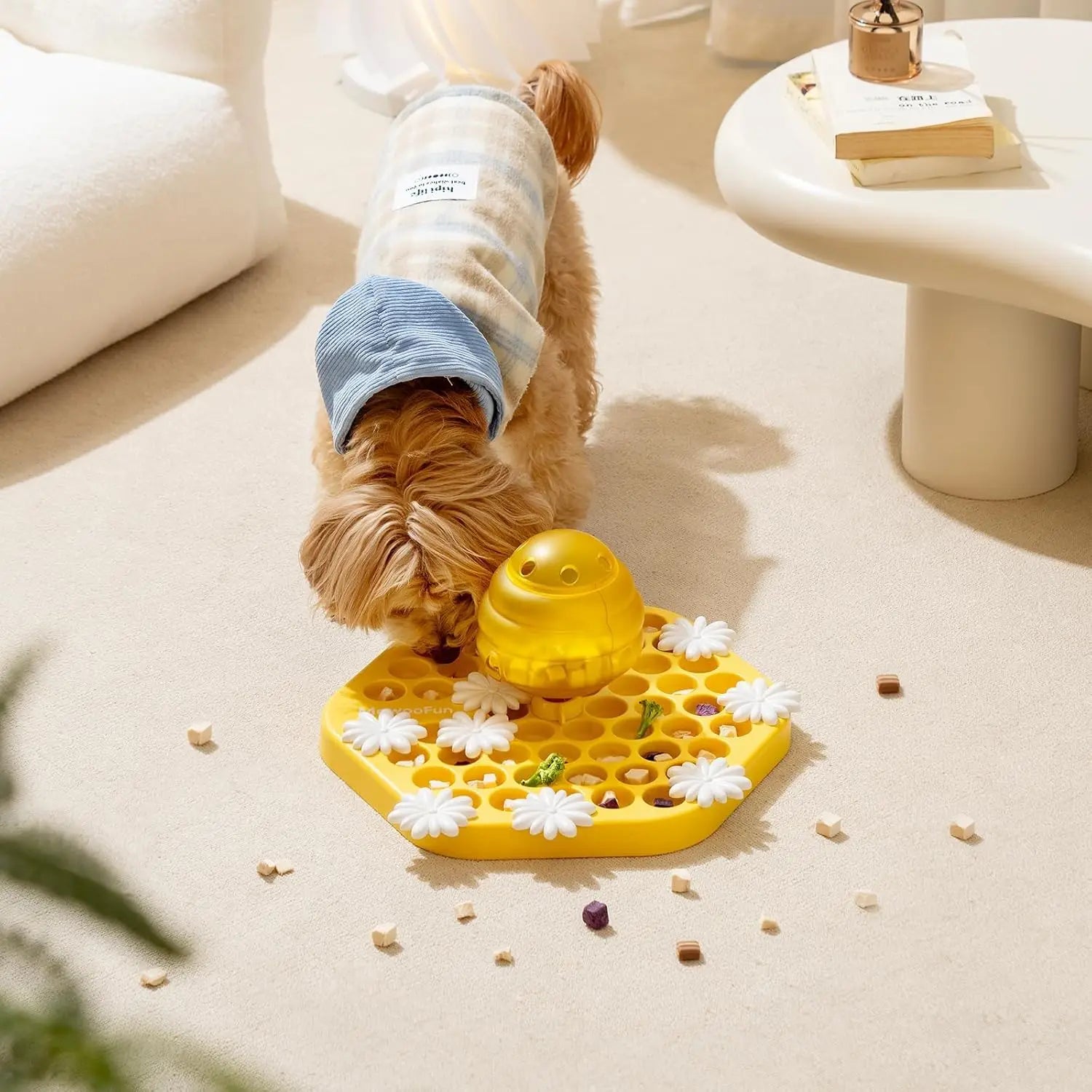 Hide your dog's favorite treats in various compartments, sliding sections, or treat dispensers. Your pet must use their paws or nose to remove obstacles and access the treats, encouraging problem-solving skills and natural foraging behavior.